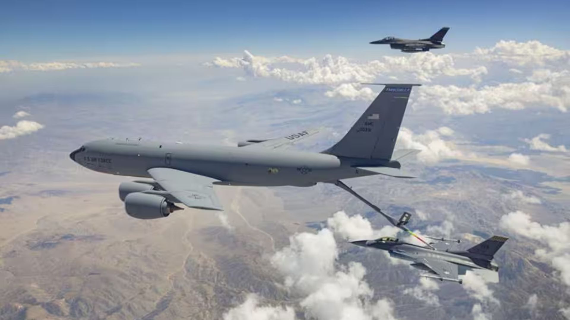 These include KC-135 and KC-46A tankers flowing from the United States toward forward locations, underpinning sustained fighter and support aircraft deployments in the region.